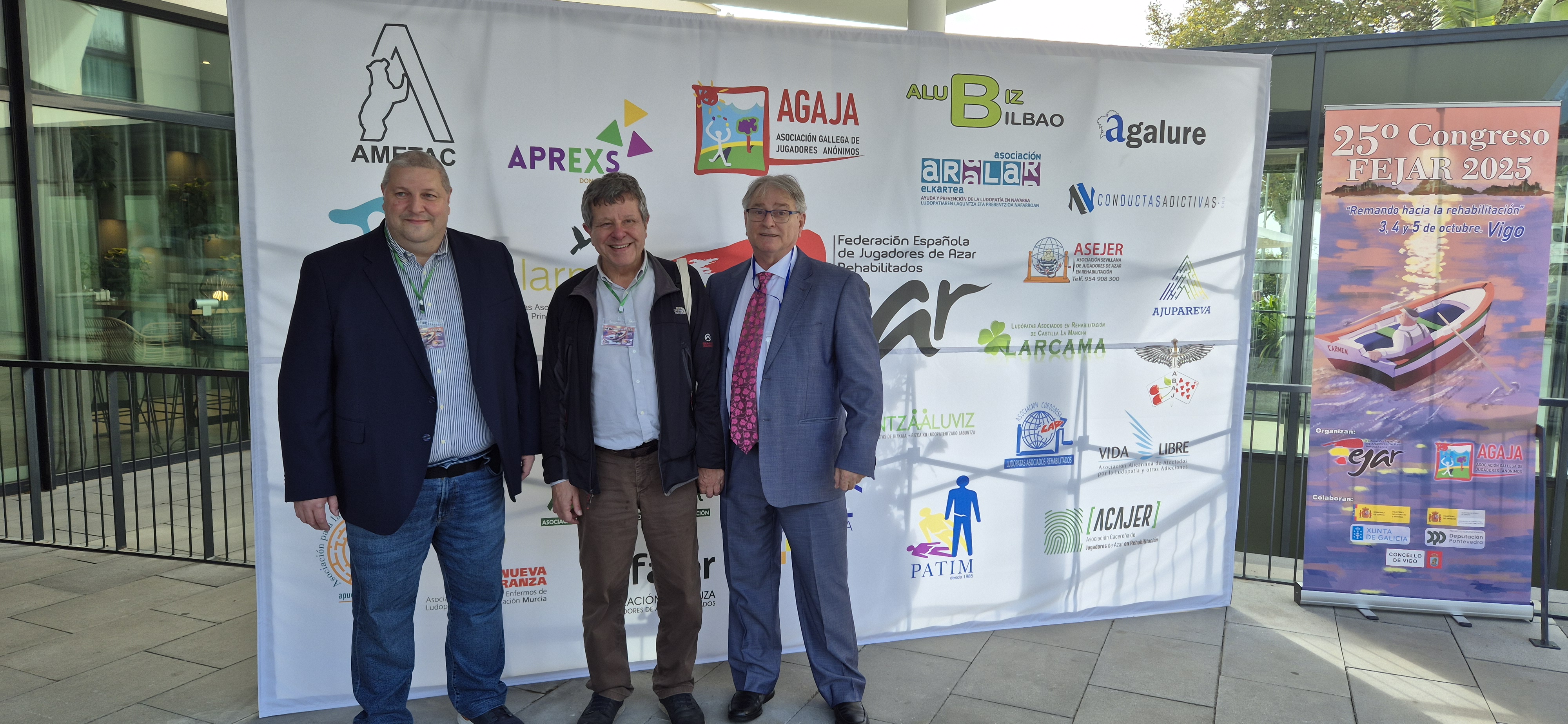 En AGEO hemos dado un paso más en nuestro convenio de colaboración con las asociaciones de rehabilitación de personas con problemas de juego y asistimos como entidad colaboradora y en representación del sector del juego privado gallego al 25º Aniversario de FEJAR, que celebró en el Hotel Attica 21 de Vigo del 3 al 5 de octubre, con el lema Remando hacia la rehabilitación.